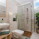 Den här strandnära lägenheten erbjuder gästerna badrumsfaciliteter, såsom hårtorkar, badlakan och handdukar. Du har också tillgång till en duschkabin och en separat toalett.